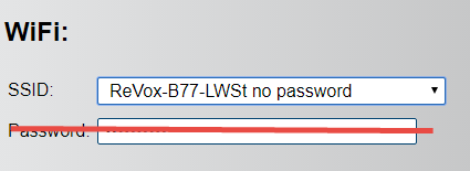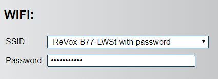 Durch Druck auf die Tasten Vorwärtsspulen >> kann nun zwischen Wifi ON Connected-> Wifi Accesspoint Offen -> Wifi Accesspoint mit Passwort -> Wifi OFF gewechselt werden. Auch hier zeigen Klackgeräusche den aktuellen Modus an. 1 mal Klacken bedeutet Wifi normal, das Gerät will sich in Ihr Netz einbinden. 2 mal Klacken bedeutet, das WifiModul spannt ein eigenes Netzwerk ohne Passwort auf mit dem Namen "ReVox-B77-LWSt". 3 mal Klacken bedeutet, das WifiModul spannt ein eigenes Netzwerk mit Passwort auf mit dem Namen "ReVox-B77-LWSt". Sie können das Passwort im Webinterface konfigurieren. 4 mal Klacken bedeutet, das Wifi Modul ist ausgeschalten.