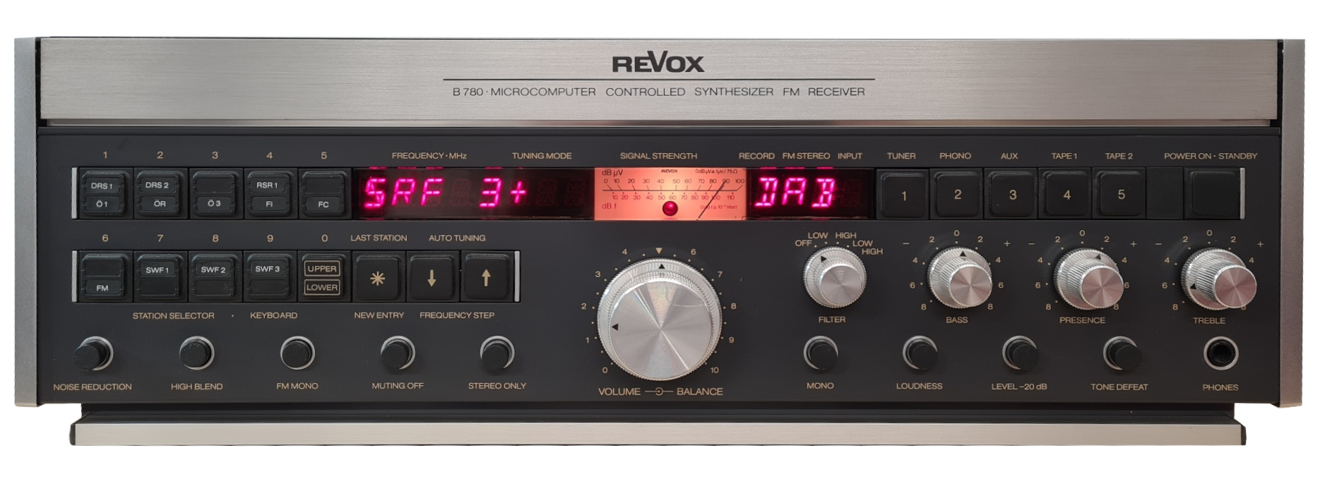 TechnologyThe conversion of the B780 (B739) essentially creates a new device, at least in terms of the radio tuner. All HF technology is removed and completely replaced by the new DAB+ and FM tuner. After the conversion, you will have a device that will continue to delight you for many years to come. The device now consumes slightly less energy than in its original state and therefore also generates slightly less heat. Since you set and operate all functions directly on the device, there is no app or a remote control necessary. Absolutely everything is operated exclusively on the device directly. Do not compare this conversion with other variants where a "DAB+ to FM converter" is installed and the FM signal is then received by the B780 (B739). These signal conversions are not conducive to audio quality in the end and are not comparable to this high quality DAB+ and FM receiver. Your device would then be there, receiving FM from this converter, but actually has no function at all. You can't operate anything on the device, nor can you see which station you are listening to. With the high-quality B-DAB-780 conversion you get a DAB+ and FM tuner of the highest quality, you are on the cutting edge of technology and enjoy the best audio quality. Thus, the device again deserves the name ReVox, is tested for RF compatibility and CE certified. This conversion kit was developed exclusively in Switzerland. High-quality components were used and also on HF there is a high-quality input filter is used, in order to keep also in the future arising disturbances as far as possible from the receiver. The conversion kit receives its finish by hand in Switzerland, is individually tested and only then sold. There is a lot of handwork in the highest quality in each individual product. |