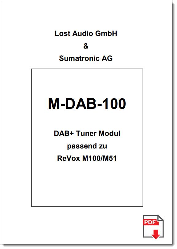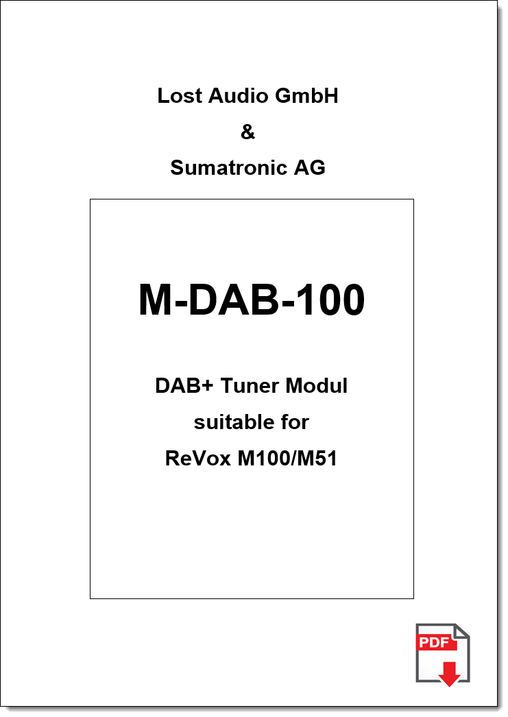 BuyThe M-DAB-100 tuner can be purchased exclusively from regular ReVox dealers or also from the worldwide distributor SUMATRONIC AG in Unterägeri. Please follow this link: www.m-dab.ch |
