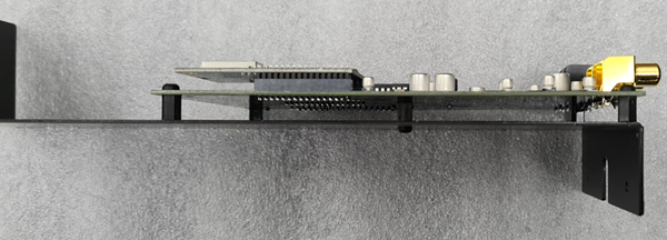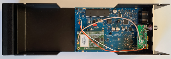 Special version spare modulThe M-DAB-100 is a separate module in an aluminium housing. However, if you use a spare module (empty module to fill optical gaps) on your M100, it is also possible to order a special version of the M-DAB-100. This comes without an aluminium housing, but with a fixing kit for securely screwing the circuit board into the empty spare module. An aluminium cover plate is also included to close the spare module from the rear and to pass through the sockets. You will need some manual dexterity for the assembly. In the spare module, 1 hole (3mm) must be drilled in the inner horizontal metal plate so that the board can be attached. The hole is not visible from the outside, it is only the inner plate.